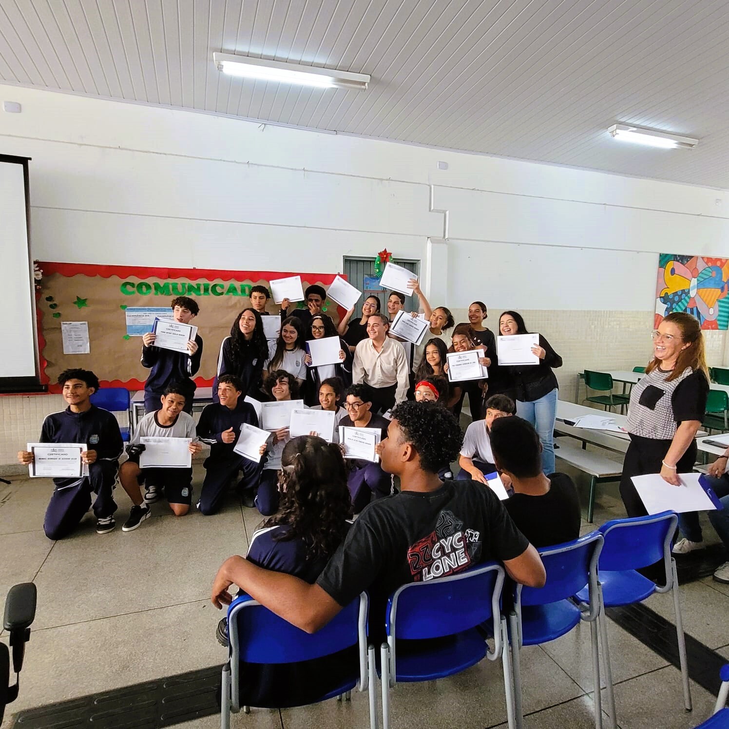 No dia 29 de novembro, a AMATRA-2, em parceria com os professores da EMEF João de Almeida Lemos, localizada em Barueri, realizou a cerimônia de encerramento do programa “Trabalho, Justiça e Cidadania (TJC)”, destinada às turmas do 9º ano da escola.