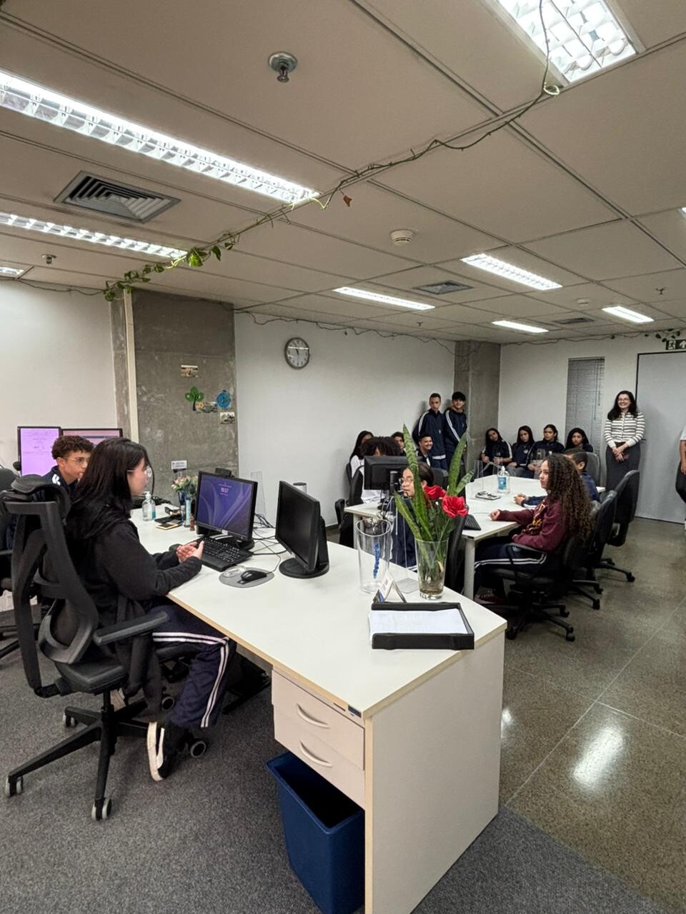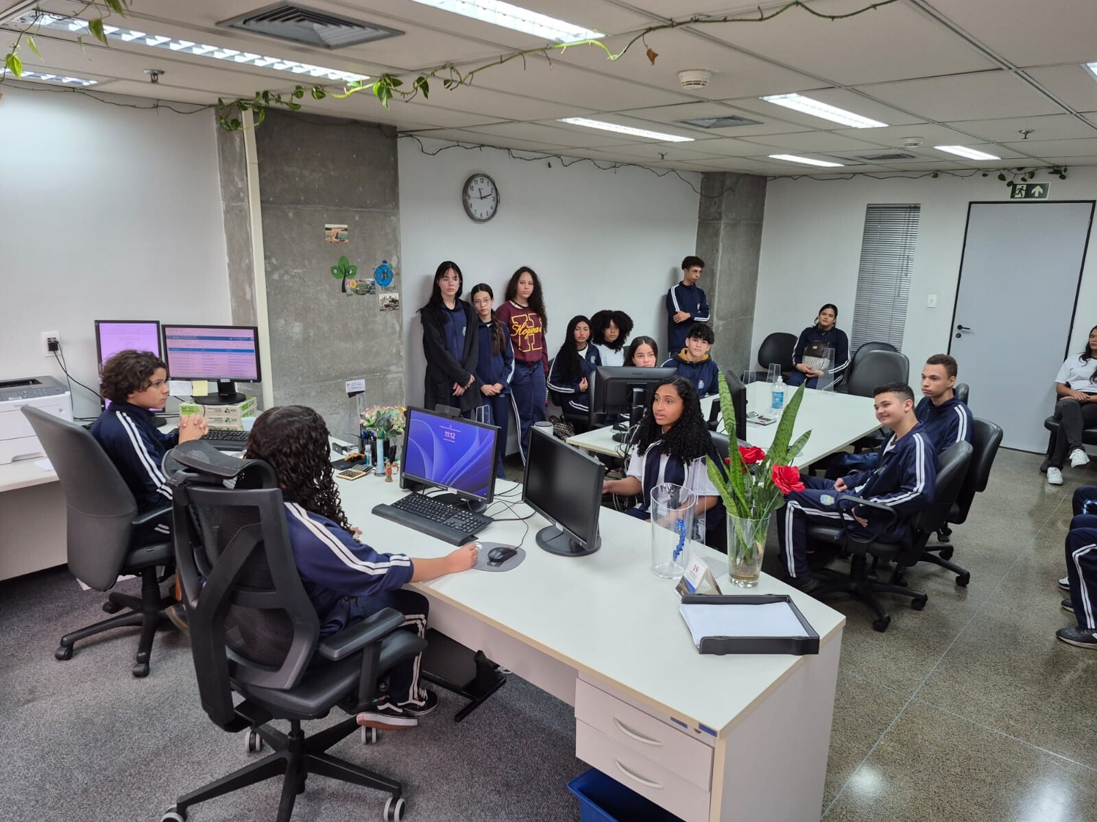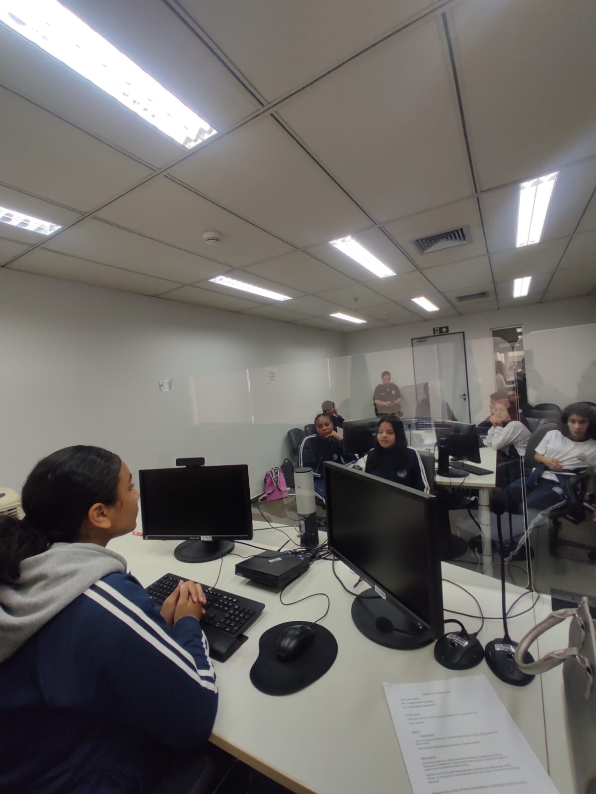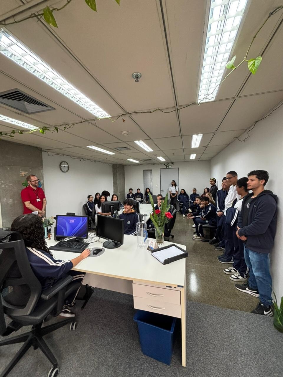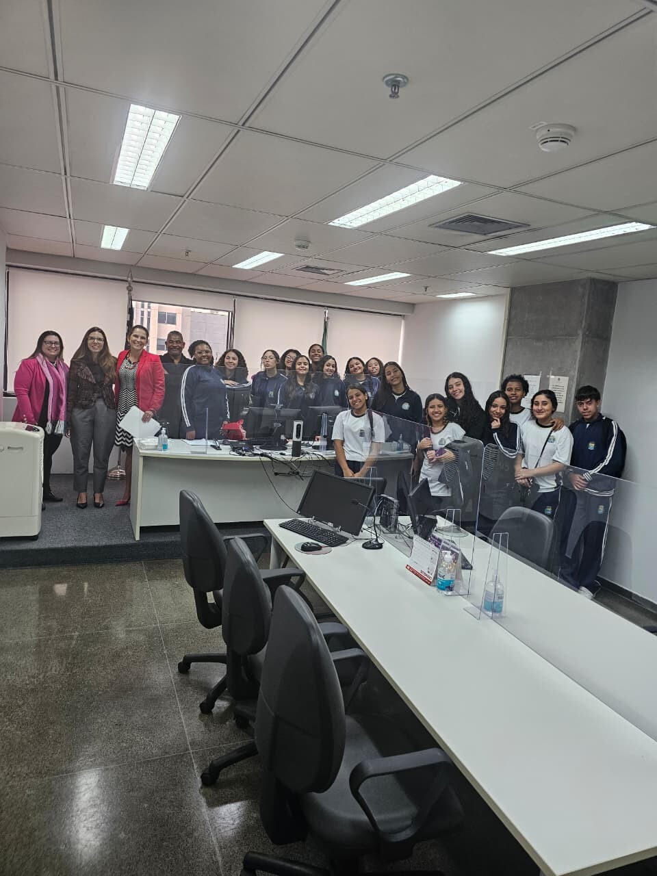Durante a visita, os alunos puderam conhecer a estrutura e o funcionamento do fórum, além de assistir e participar de simulações de audiências, vivenciando na prática o cotidiano da Justiça do Trabalho.