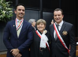 Na ocasião, o presidente da AMATRA-2, juiz Diego Reis Massi, e os(as) magistrados(as) associados(as) Carolina Menino Ribeiro da Luz Pacífico, Paula Becker Montibeller Job, Christina de Almeida Pedreira, Luís Fernando Feóla e Thomaz Moreira Werneck foram agraciados(as) com a homenagem no grau de Comendador.
