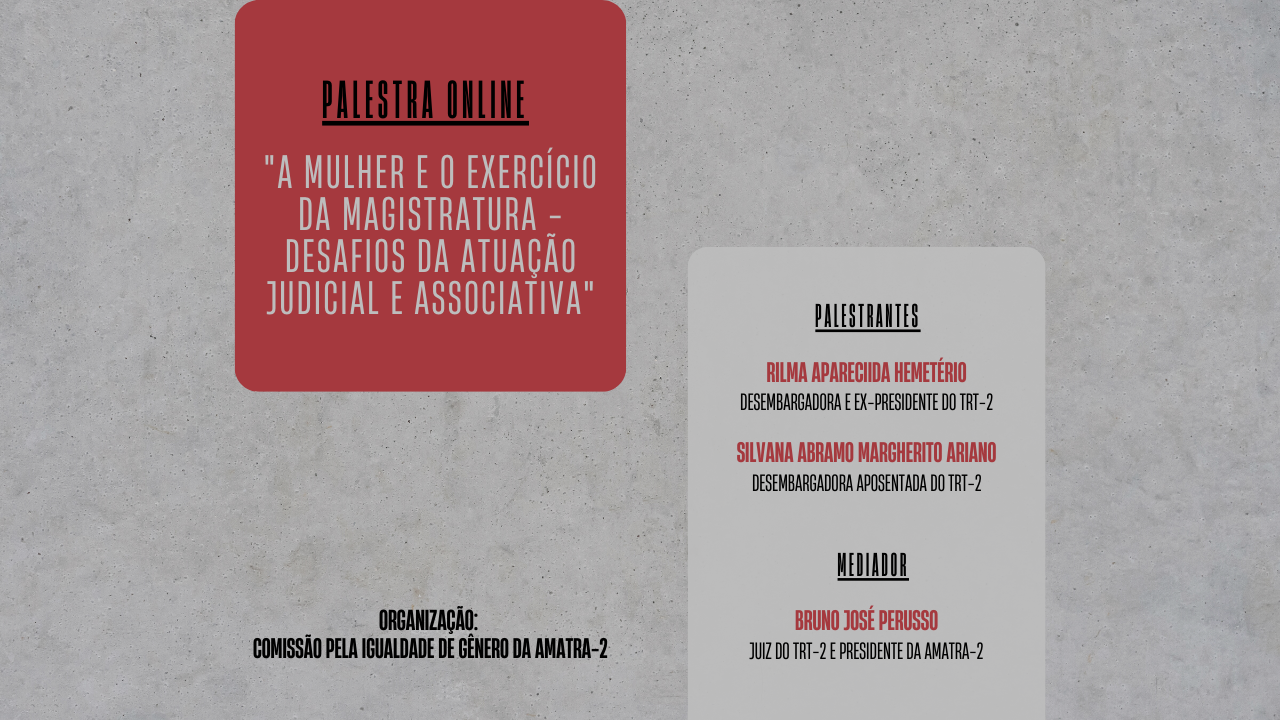 PALESTRA ONLINE “A MULHER E O EXERCÍCIO DA MAGISTRATURA - DESAFIOS DA ATUAÇÃO JUDICIAL E ASSOCIATIVA”
