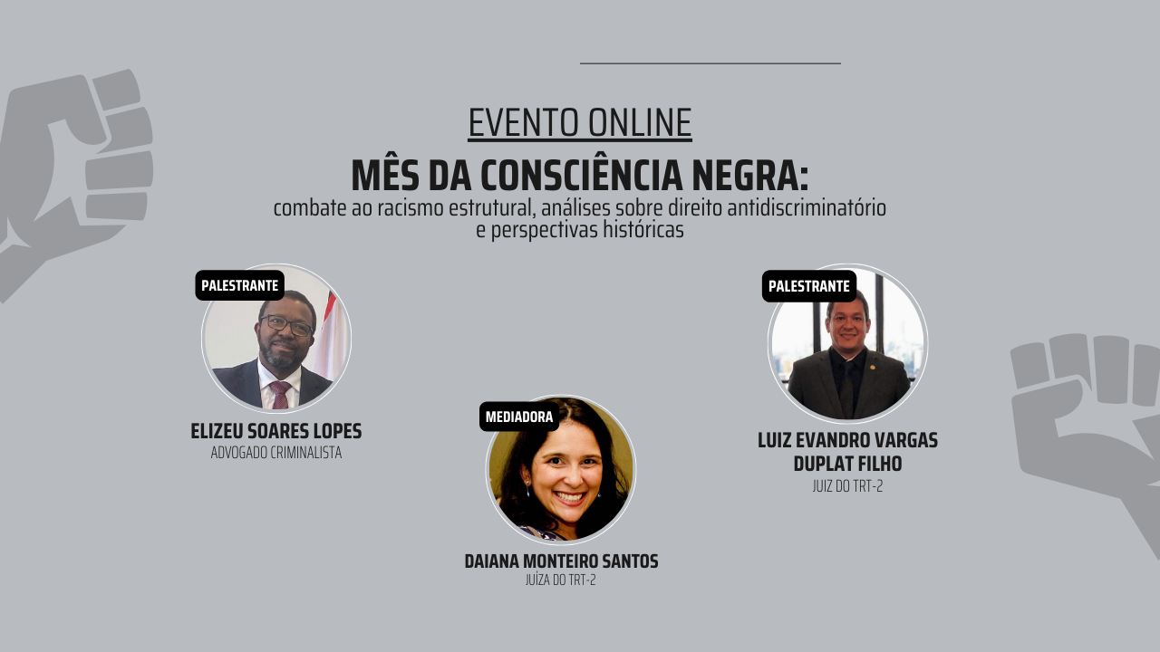 EVENTO ONLINE “MÊS DA CONSCIÊNCIA NEGRA: COMBATE AO RACISMO ESTRUTURAL, ANÁLISES SOBRE DIREITO ANTIDISCRIMINATÓRIO E PERSPECTIVAS HISTÓRICAS”