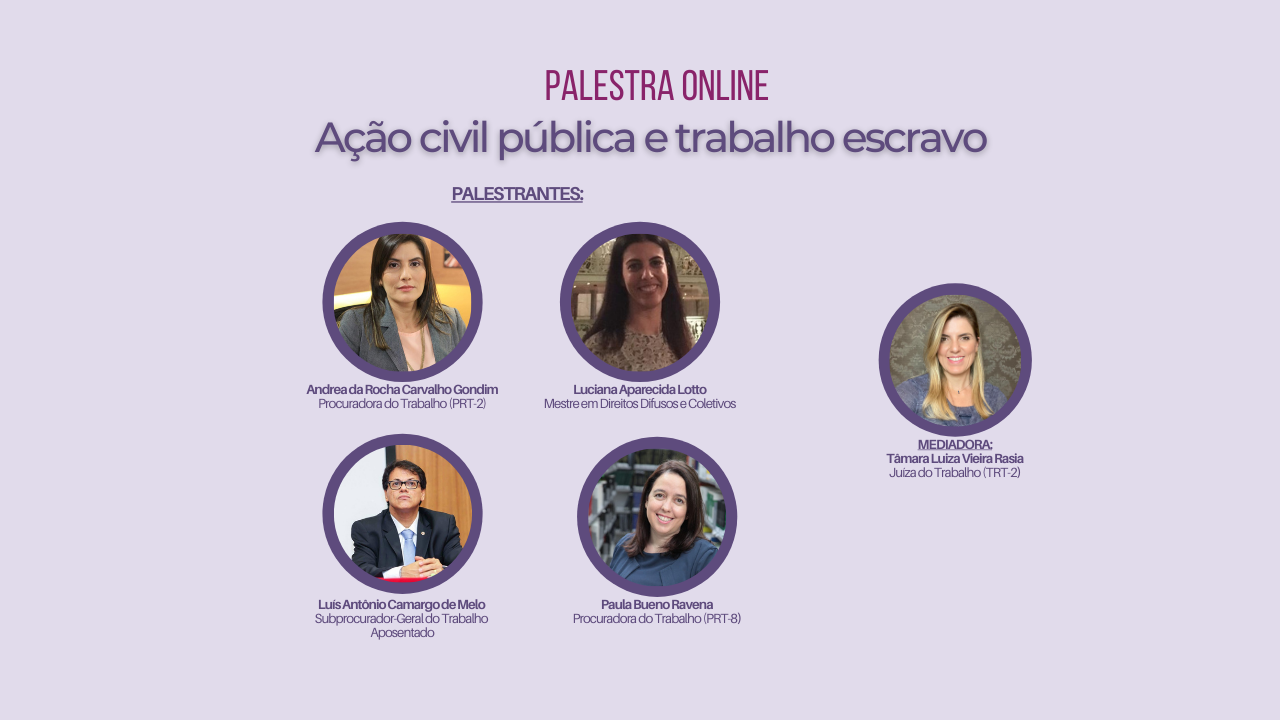 PALESTRA ONLINE “AÇÃO CIVIL PÚBLICA E TRABALHO ESCRAVO”