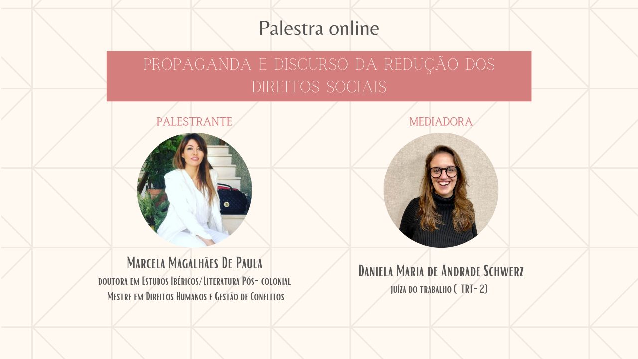 PALESTRA ONLINE “PROPAGANDA E DISCURSO DA REDUÇÃO DOS DIREITOS SOCIAIS”